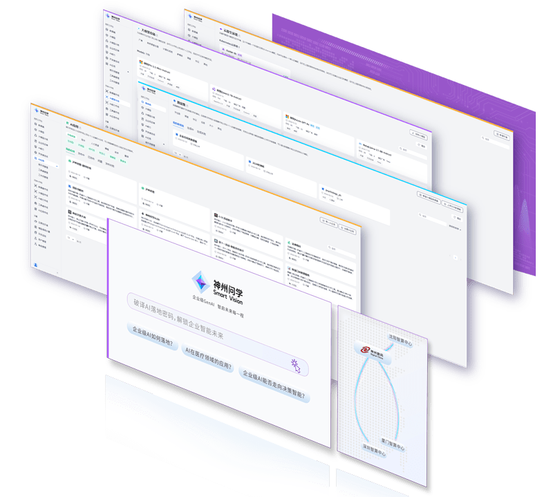 打通GenAI落地企业的算力、、、模型、、、、知识、、应用四大要素,,,综合解决GenAI工程在选、、练、、用、、管四大环节的问题,,,,旨在为企业的数智化转型提供全套的GenAI智能应用工程流水线。。。PA视讯集团问学包括模型算力管理平台、、、企业私域知识管理平台、、AI应用工程平台三大模块,,,,为企业提供更先进、、、、更匹配的大模型,,,解决了算力上信创适配、、、融合调度、、、企业私域大模型高效推理训练问题,,,,同时解决了数据到知识的向量化以及场景应用的轻量化组装问题。。